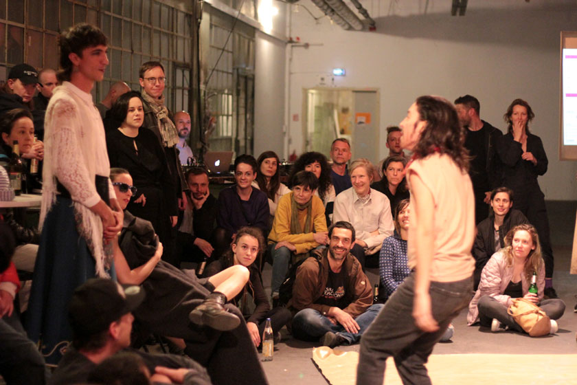 Flutgraben Performances is a series of events located at Flutgraben, an artist-run studio building in Berlin. It is dedicated to the exploration, growth and transformation of live art. Each year a group of 10–12 artists comes and works together during the time of the entire year. Individually the artists follow their own artistic tracks without any limits in form and content. They use the time to test, develop, re-think and discuss their artistic practices and believes. On a collective level the group invents new forms of meeting the public, aiming for an encounter of artist, art work and art lover as a fertile, intimate and joyful act.